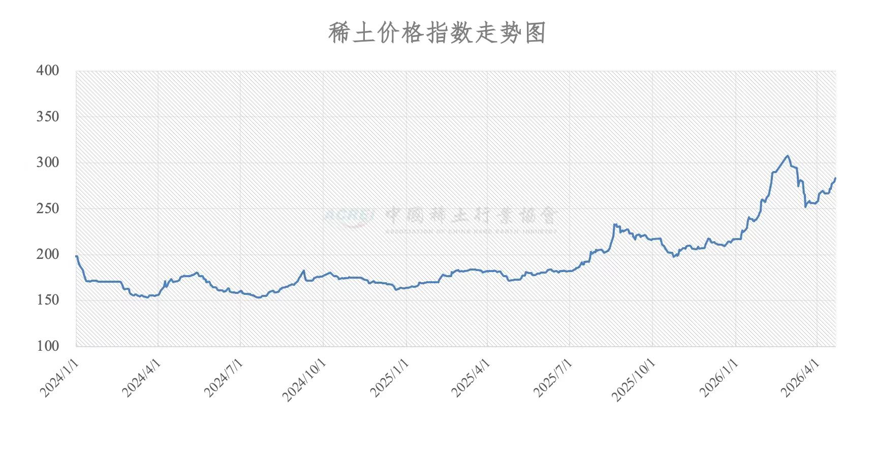 China rare earth price index hits 283.2 in April 2026, with magnet materials like PrNd and terbium driving gains while light rare earths stay flat. (read full article...)