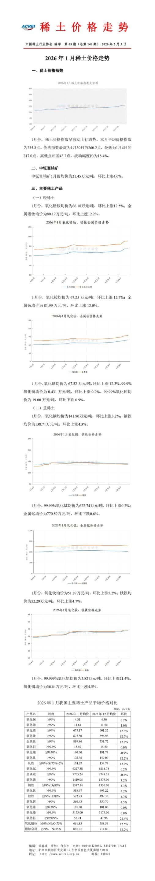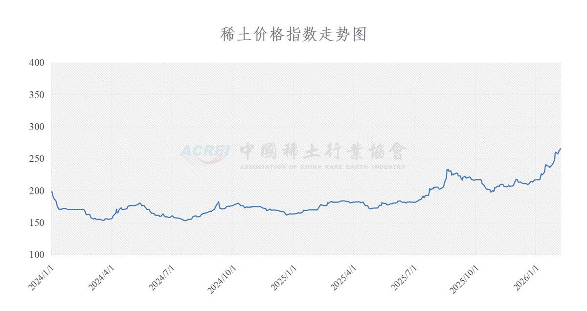 Chinaโ€™s rare earth prices extended a clear upward trend into early February 2026, according to official index data released (opens in a new tab) on February 6 by the Association of China Rare Earth Industry (ACREI). The Rare Earth Price Index closed at 265.4, confirming sustained price strength across both light and heavy rare earth categories within Chinaโ€™s domestic market.