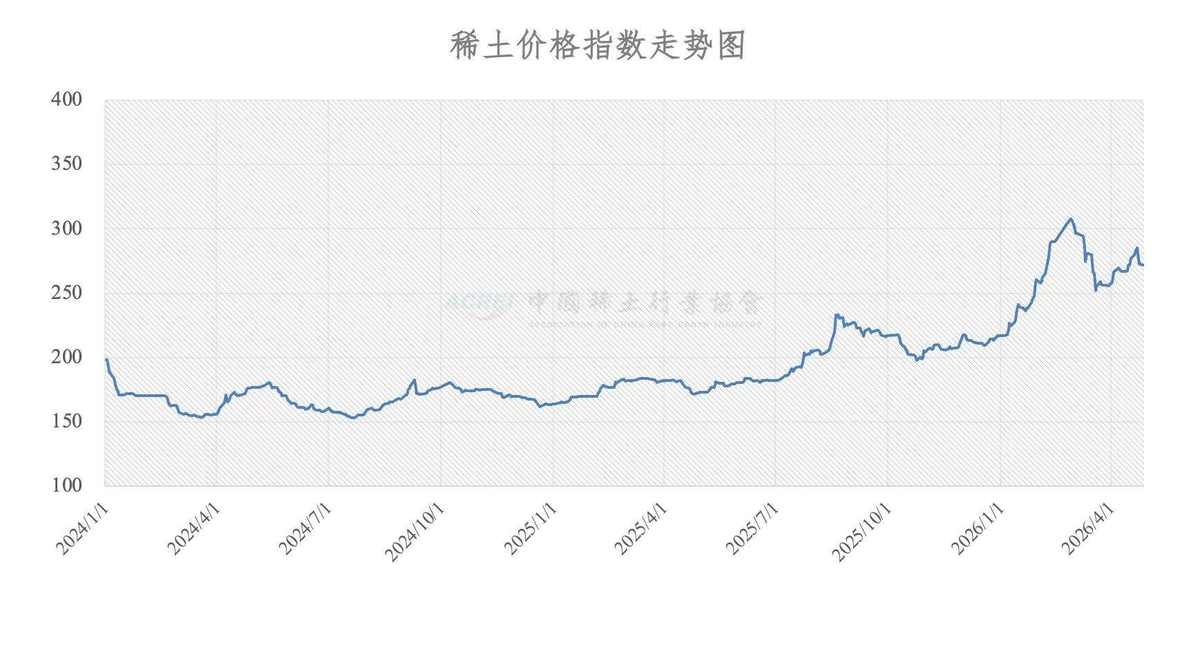 • China's rare earth price index reached 271.8 on April 27, 2026, reflecting a controlled rise rather than market-driven volatility as Beijing stabilizes pricing at elevated levels across critical materials like neodymium and dysprosium.