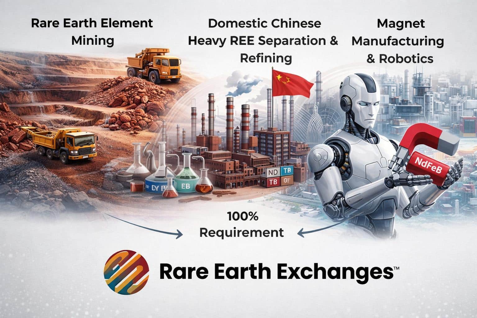 In humanoids, where dozens of tightly packed motors operate continuously in limbs, hands, and mobility systems, thermal stability is not optional; without Tb and Dy, magnets demagnetize under load. That means heavies are not bulk materials, but they are performance-critical multipliers. As robotics scales from prototypes to mass production, demand will concentrate on high-coercivity magnet gradesโthe same materials essential to EV drivetrains, drones, and defense systemsโintensifying competition for limited heavy rare earth supply, most of which is currently processed in China. In short, the humanoid revolution is also a magnet storyโand therefore a rare earth story.