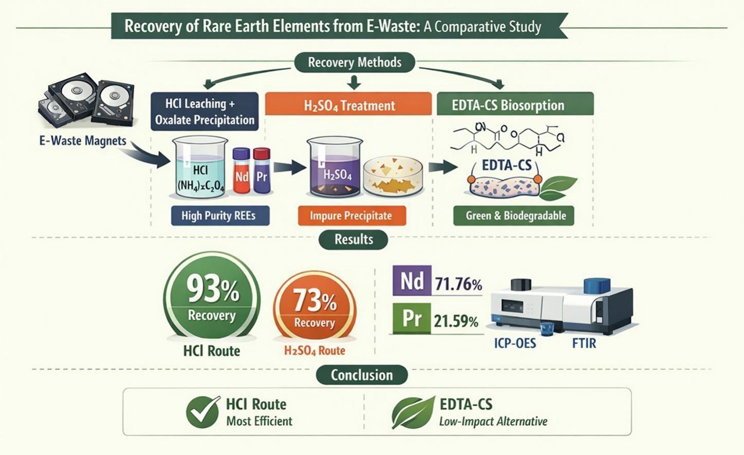 Citation: Abbas, M.D. et al. (2026). Comparative evaluation of recovery routes for neodymium and praseodymium from discarded hard disk drive magnets. Materials Letters.