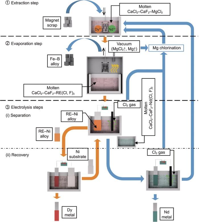 diagram of the process of making a liquid, including REE recycling