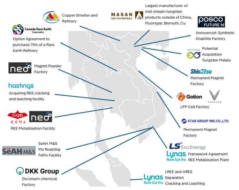 - ASEAN nations are forming a hybrid critical minerals supply chain model, with Myanmar providing feedstock, Vietnam driving ambition, Malaysia anchoring processing, and Thailand expanding industrial capacity.