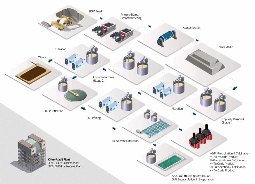 For conventional hard-rock rare earth projects—carbonatites, monazite sands, alkaline intrusives—the core processing inputs are globally available.